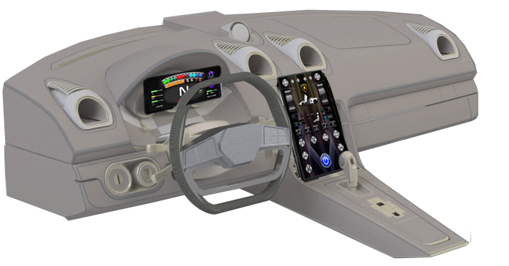 Comprised of a cluster LCD display screen, a remote touchscreen display and an interface module, the LCDi-200 system is able to handle an array of digital/analog inputs and outputs. Update any vehicle interior with state of the art graphic interfaces that can be personalized to be one of a kind.