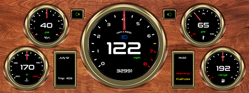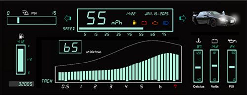 Comprised of a cluster LCD display screen, and interface module, the LCDi-100 system is capable of handling an array of digital, and analog inputs. Update any vehicle interior with state of the art graphic interfaces -even in your classic, early model ride!